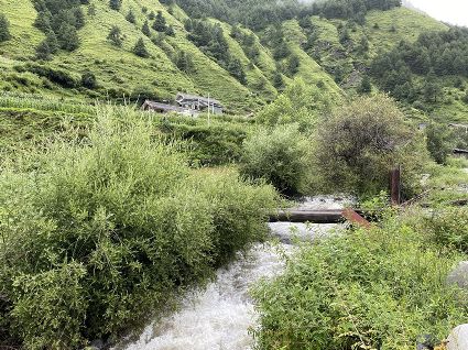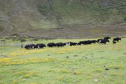 走到一處草坪,南杰和吉美下馬一起去扶雍貝,說(shuō)是在此處稍作歇息。雍貝的臉色恢復(fù)了紅潤(rùn),他取下盤香枝插進(jìn)吉美濃密的頭發(fā)里,兩人由此發(fā)出了嬉笑聲。馬兒徑自走向草坪深處的水洼里飲水,打著酣暢的響鼻,頸項(xiàng)上銅鈴鐺隨馬兒鬃毛的抖動(dòng)發(fā)出了“鐺鐺”的聲音。馬兒飲飽了水,轉(zhuǎn)身朝我們走來(lái)。繼續(xù)騎行,不知過(guò)了多久,日光在頭頂上游移,漸漸偏西。雍貝在前方問(wèn)南杰,阿尺,巴烏牧場(chǎng)還有多遠(yuǎn)?南杰指向眼前的山峰說(shuō),登上這座峰頂就到了?;赝宦方?jīng)過(guò)的河谷,早已不知去向,我們身處的位置幾乎與周遭巍峨的山巒平齊了。我從衣兜里取出手機(jī)測(cè)試海拔高度,4820米。