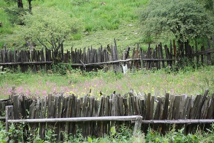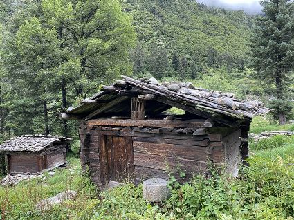 隨著海拔高度的升高與緯度的增加,一路上的植被類型也在不斷發(fā)生著變化。穿越深闊的暗針葉林,六匹馬起起落落的腳力踩出了一個(gè)馬幫的回音,所有的植物在各自的生命活動(dòng)中散發(fā)出了清新怡人的芬多精,吉美為此小聲哼唱起了愉悅的歌兒,細(xì)聽(tīng)卻又像是兩只云雀在不遠(yuǎn)處鳴囀。再往上走,周遭的林木又轉(zhuǎn)換成了密致的高山杜鵑林,無(wú)數(shù)修長(zhǎng)的木流蘇垂掛在樹(shù)枝上,像哈達(dá)。一路沉默的南杰轉(zhuǎn)頭來(lái)開(kāi)始與我說(shuō)話“六月間,這里的每一棵樹(shù)都開(kāi)滿了粉白的花朵,一樹(shù)樹(shù)的煞是壯觀好看,我一個(gè)人經(jīng)過(guò),總能聽(tīng)到一朵、兩朵花鈍落的聲音。最初,我以為是馬雞飛落了,輕聲走入林中打探,身后又會(huì)落下一朵、兩朵花,那聲音厚重沉實(shí),林中又過(guò)于安靜,我就慌忙走出了林子......”南杰說(shuō)話聲音秀氣,我聽(tīng)得時(shí)斷時(shí)續(xù),過(guò)風(fēng)吹送著南杰話語(yǔ)中杜鵑花的香氣。前路逐漸敞亮起來(lái)的時(shí)候,路邊的杜鵑樹(shù)開(kāi)始變得稀稀落落了,只見(jiàn)路旁堆壘著高高低低的新鮮柴垛。再往上就沒(méi)有樹(shù)木了,只有矮腳盤香和淺草,路邊的山包上緊貼著密密麻麻的貌似多肉植物的草葉,從草心抽出來(lái)一枝枝薔薇紅的花柱在風(fēng)中頻頻點(diǎn)頭。雍貝在前方的馬匹上頭低得越來(lái)越沉,以為他瞌睡,我喊了聲貝,他回頭看我,面色灰白嘴唇有些發(fā)紫。南杰回望我們后一躍下馬,從路邊的淺草中折斷幾根盤香枝別在雍貝的耳際,說(shuō)是可以抵御高反。剩余的兩根遞給我,細(xì)小的枝葉上積著一層薄薄地灰色粉塵,深嗅有松脂的清香氣味,安人心神。