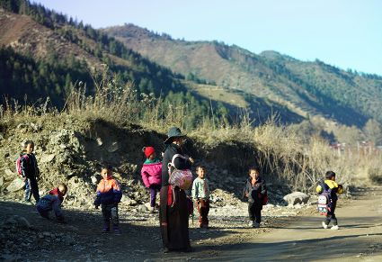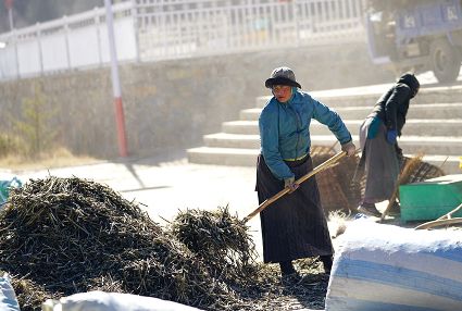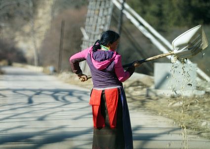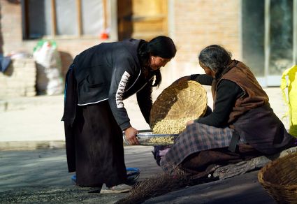 一群孩子會(huì)準(zhǔn)時(shí)來小二樓叫我,要去密林,要去山岡,要去尋找?guī)в薪?jīng)文的瑪尼石,還要去那個(gè)神秘的洞頂。比孩子們更準(zhǔn)時(shí)的是掛在小二樓上的四個(gè)大喇叭,鳥雀剛醒來,廣播就開始了,就必須要起來了。穿過巷道,和打豆子的人們一起享受勞動(dòng)的幸福。我們?cè)谝黄?,等待著下午的廣播,因?yàn)閺V播會(huì)給我們帶來無(wú)盡的喜悅。