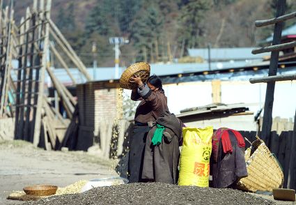 我想,擁有了清新質(zhì)樸的鄉(xiāng)野日子,就可以靜下心來。而事實(shí)上還是無(wú)法安下心來,一面想著山林的神秘,一面想著城市的熱鬧。寂寞無(wú)聲地穿過巷道,那個(gè)向陰的小二樓一如既往地昏暗。拉開麻布的窗簾,大多時(shí)候我會(huì)看見走在巷道里的老老少少、男男女女,他們背著柴禾,滿帶笑容,相互致意。他們的日子似乎充滿了無(wú)盡的樂趣,也充滿了幸福和陽(yáng)光。上午十點(diǎn)的時(shí)候,陽(yáng)光會(huì)滑過窗臺(tái),轉(zhuǎn)瞬即逝,但陽(yáng)光的確向小二樓袒露了它的無(wú)能為力。另一張桌子擺放著廚具,廚具上每天都會(huì)有新的灰塵堆積,盡管如此,它們依然發(fā)出青稞的馥郁之氣。