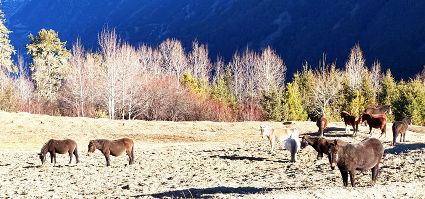 洛克所經(jīng)過的地方就是三巖龍鄉(xiāng)的猛董,這是一處鮮為人知的隱世天堂。猛董有“五絕”,即“山、湖、谷、寨、寺”,山是被當(dāng)?shù)厝诵欧顬樯裆降柠湹刎暩拢湹?,藏語為珍珠),湖是神山腳下的麥地措(珍珠湖),谷是雅礱江谷地的藍(lán)月山谷,寨是猛董“后花園”的普米寨子,寺是修建于明清時(shí)期的猛董古寺。