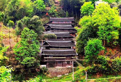 一眼的山,一眼的綠,一眼的云霧,一眼的煙雨,從吊腳樓木格花窗亮麗妖嬈走出來(lái)。經(jīng)過(guò)吊腳樓的旅人,不經(jīng)意就會(huì)站成一棵長(zhǎng)腳的樹。