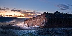 石經(jīng)城位于距石渠縣城呢呷鎮(zhèn)東北約90公里處的阿日扎鄉(xiāng)境內(nèi),坐落在雅礱江支流洛曲河西岸一處兩山相望的草原間,背靠一座平緩、渾圓的山丘,前面是一望無際的草原,由于草原極為遼闊,遠遠望去,整座城并不顯得特別雄偉、壯觀,但走近細看,這座用一塊塊刻滿經(jīng)文和佛像的石片、石塊在漫長歲月中逐漸壘砌起來的石城,所蘊含的厚重與蒼茫,堅韌與神秘,讓我想起荷爾德林所說的“那些四處飄游的分散的力量,都匯聚在一個黃金般的中心”。