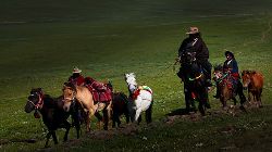 8月的扎溪卡草原水草豐美、牛羊遍地、到處是一片花的海洋,兩萬多平方公里的廣袤大地如同一座敞開的大花園。汽車行駛在草原上,就像一只小船在無邊無際的大海上航行,有時候覺得已走到了天邊,可是登高一望,還是芳草碧連天,地平線依然很遙遠(yuǎn),好像永遠(yuǎn)沒有盡頭。在這離藍(lán)天很近離塵世很遠(yuǎn)的廣闊空間里,仿佛在夢游仙境,周圍的山川景物都帶有夢幻般的色彩,對自身的存在也產(chǎn)生一種不真實的虛幻感。在這里,你似乎已變成了一個自由自在的牧人,只不過你放牧的不是牛羊,而是生命和靈魂。 扎溪卡草原的夏天到處呈現(xiàn)出一派生機勃勃的盎然景象,所有的生命之花都在這個季節(jié)盡情地綻放、茁壯地成長。在這個被稱為動物天堂的地方,你仿佛走進(jìn)了一個天然野生動物園,所到之處,不時有“羽族炫翎,蹄類競走”的情形出現(xiàn)在身旁。你會驚喜地看到一對對黑頸鶴在水邊起舞,一群群白唇鹿在山間奔跑,敏捷的巖羊在峭壁上跳躍,矯健的金雕在藍(lán)天上翱翔……