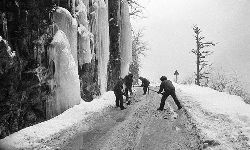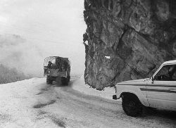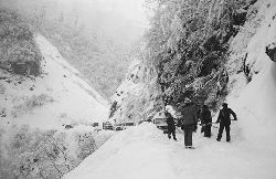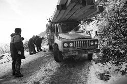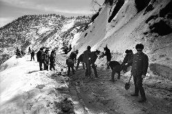 “二呀二郎山, 高呀高萬(wàn)丈, 古樹荒草遍山野, 巨石滿山崗。 康藏交通難行走, 康藏交通被它擋…… 五十年代初,《歌唱二郎山》傳遍中外,二郎山因此而聞名四海。歌詞也是昔日二郎山的真實(shí)寫照?!?br />  一九九七年十一月二十四日,連續(xù)多日大雪,把整個(gè)二郎山裹得嚴(yán)嚴(yán)實(shí)實(shí),白茫茫一片。陣陣山風(fēng)吹過(guò),大霧就像瀑布一樣,從山頂直往下翻涌?jī)A瀉。 一大早,州交通局打冰除雪排險(xiǎn)的干部職工就從二郎山管理站直奔山埡口。載有防滑砂的大貨車穿迷霧,繞山梁,向山頂埡口疾馳。由于氣溫太低,霧又大,車上的擋風(fēng)玻璃很快就結(jié)下了冰,路面打滑非常嚴(yán)重。前面車輛堵了起來(lái),排險(xiǎn)人員只好下車步行。 大霧彌漫,能見(jiàn)度很底,陰霾的天空又飄起了紛紛揚(yáng)揚(yáng)的雪花,剌骨的寒風(fēng)陣陣襲來(lái),只聽(tīng)見(jiàn)車蓬布在風(fēng)中“嗶剝”作響,卻看不見(jiàn)前面到底堵了多少車。排險(xiǎn)人員只好相互攙扶踩著冰滑的邊路艱難地向行。好不容易來(lái)到堵在最前面的車子面前。原來(lái)是一輛載著原木的東風(fēng)牌大貨車側(cè)滑在公路上,把整個(gè)公路堵死了。 局領(lǐng)導(dǎo)當(dāng)即指揮大家用鋼釬、鐵鎬和鋤頭處理冰道,沒(méi)有撮箕,大家借來(lái)加水桶裝運(yùn)冰雪……氣溫仍在急劇下降,剛從雪堆里刨出來(lái)的路,又被結(jié)起一層冰,就像地面上澆上了油,這就是冰雪道上有名的“桐油凌”。 有二位老同志不顧年老體弱,積極參與打冰除雪,一個(gè)在打冰時(shí),被彈起的冰碴把腦門劃了一個(gè)口子,鮮血直往外冒。有人想幫他包扎,他堅(jiān)決不干,自己就用手帕按住,把帽子向下拉蓋住傷口就算了。血從手帕中浸透出來(lái),與眉毛上的冰凌結(jié)在一起。氣溫太低,冰層太厚,十字鎬每挖一下,多數(shù)情況下也就是挖下一個(gè)白點(diǎn)而已。不一會(huì)兒,另一位老同志已是滿頭大汗,大家勸他休息一下,他卻說(shuō):趁著現(xiàn)在雪不是太大,早點(diǎn)把主道上的冰雪多除點(diǎn),過(guò)往二郎山的車輛就多一份安全。 排險(xiǎn)人員的手凍紅了,刨冰雪碰傷的指頭還流著鮮血,身上蒸發(fā)的熱氣,把衣領(lǐng)口、袖子口和褲子口結(jié)成了冰,可是,誰(shuí)也沒(méi)有吭一聲。 ……受堵車輛終于向前開(kāi)動(dòng)了。 風(fēng),越刮越猛,雪,越來(lái)越大。 防滑車在冰雪道上艱難地向前爬行著,車箱上面的職工們揮舞的洋鏟向路面撒著防滑砂。一路上風(fēng)絞雪,防滑車象一頭不聽(tīng)使喚的牛,顛簸、亂竄,好不容易才來(lái)到260(二郎山最險(xiǎn)處),對(duì)這里“桐油凌”路面進(jìn)行重點(diǎn)防滑處理后,防滑車又返回來(lái),開(kāi)始向山頂進(jìn)發(fā)……風(fēng)雪二郎山上打冰除雪、防滑排險(xiǎn),看似沒(méi)有驚天動(dòng)地的壯舉,身臨其景才知其艱難辛苦。難怪當(dāng)年每每經(jīng)過(guò)二郎山冰天雪地奇險(xiǎn)路段的車,都會(huì)向風(fēng)雪中屹立路邊的交通系統(tǒng)排險(xiǎn)保暢通的職工們鳴笛致敬,風(fēng)雪中的那份情彌足珍貴。 川藏線上的老司機(jī)傳下來(lái)一首傷心的順口溜:“車過(guò)二郎山,如闖鬼門關(guān),萬(wàn)幸不翻車,也要凍三天!”其險(xiǎn)峻實(shí)為罕見(jiàn),尤其是途經(jīng)二郎山260(公路公樁)處,曾被淡虎色變的人稱為“鬼招手”的險(xiǎn)路段。 1983年1月3日,有著安全行車44萬(wàn)公里記錄的一位駕駛員開(kāi)著輛嶄新的東風(fēng)牌貨車,同行還有兩名職工,夜行二郎山,在彌天大霧中神秘地“失蹤”了。十五天后,搜山的人才用望遠(yuǎn)鏡看到260公里路樁處的山崖下,有一塊汽車破篷布掛在樹枝,猶如招魂的凄厲幌幡在冷風(fēng)中招搖晃動(dòng)。鋼纜繩吊著搜山的人下到崖下400米深處的谷底。扒開(kāi)一座座雪堆,叫人汗毛倒豎:雪堆下,盡是廢大梁、爛車廂、銹車頭和支離破碎的汽車,足有一個(gè)汽車連!一輛不知埋了多久的卡車廂里牛肉已腐爛,駕駛室里坐著三具發(fā)黑的僵尸……其狀慘不忍睹!