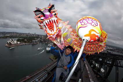當(dāng)日,由當(dāng)?shù)厝A人團(tuán)體精心準(zhǔn)備的中國傳統(tǒng)舞龍亮相悉尼海港大橋,拉開中國新年慶祝活動(dòng)的序幕。