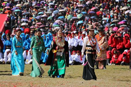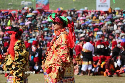 于是,年復一年,“漢子”與“花”兒們便挺拔、綻放在漢語表達的一個極點之上,被玄想,被渴望。對遠道而來的人們或是世代居于高原的子民而言,康巴漢子與康巴之花不僅僅是美的化身,通過康巴漢子與康巴之花的評比,人們在尋找一個早已失落卻又天然渾成的世界。