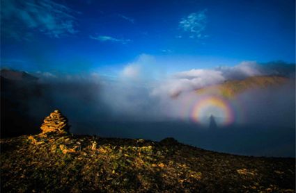 其中“群峰為屏觀景平臺(tái)”為最高點(diǎn),海拔4400米,有全國海拔最高的咖啡廳,試想下在這里喝著咖啡,欣賞佛光,看著外面云海翻騰,日照金山,仿佛置身在仙境。