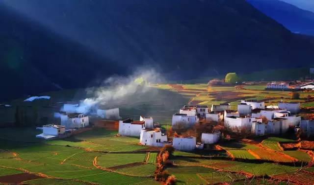 村子坐落在兩座大山之間的平原地帶,夏天和秋天是村子最美的時(shí)候,夏天村子里的青稞綠油油的一片,秋天變成一浪又一浪的金燦燦,甚是壯觀…