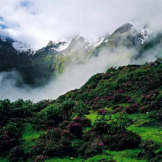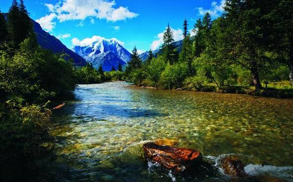 雅家埂位于海螺溝范圍內(nèi),四周環(huán)繞著終年不化的雪山、瀑布、草甸、杜鵑花、冷杉林。冰川河岸上布滿了數(shù)不清的紅石,與清洌的流水相伴順流而下,讓人感嘆大自然的造化神奇。孫儷鄧超主演的仙境電影《畫(huà)壁》,就曾在此取景拍攝。