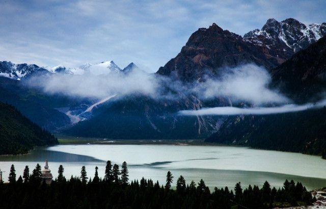 置身于德格的新路海,一汪碧綠的水,靜靜躺在群山的懷抱之中,清晨的薄薄霧氣彌漫于湖水之上,有種朦朧的仙境意味,寧?kù)o而吉祥?;蛟S只有清晨那一只只不知名的鳥(niǎo)兒掠過(guò)湖邊,才能打破這一片仿佛凝固的寧?kù)o。