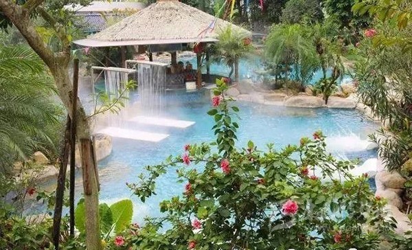 公園內(nèi)有大小溫泉10余處,溫泉群所處位置優(yōu)越,界于荷花海和大草坪之間,距荷花海只有2公里。大量沸泉從地下噴涌而出,出口水溫達80℃,足可用以沏茶和煮食雞蛋。沸泉水順山勢而下,形成一道水簾,在萬木蔥蘢的溝中,白霧飄忽不定,群山若隱若現(xiàn),恍如仙境。