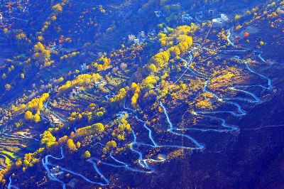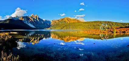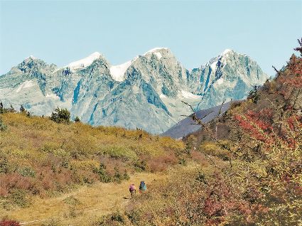 秋色與藍(lán)天相映 明珠與雪山成趣