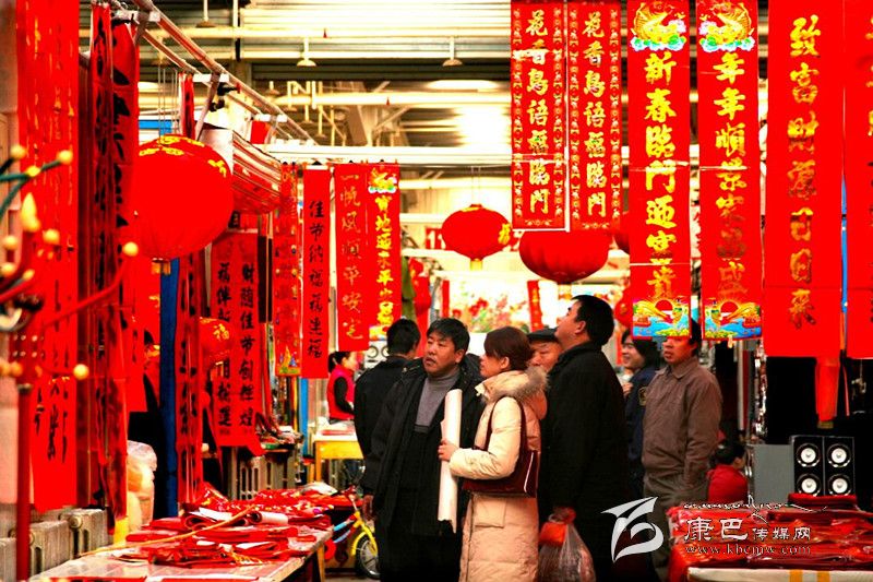 春聯(lián)亦名“門對(duì)”、“春帖”,是對(duì)聯(lián)的一種,因在春節(jié)時(shí)張貼,故名。春聯(lián)的一個(gè)源頭是桃符。最初人們以桃木刻人形掛在門旁以避邪,后來(lái)畫門神像于桃木上,再簡(jiǎn)化為在桃木板上題寫門神名字。春聯(lián)的另一來(lái)源是春貼。古人在立春日多貼“宜春”二字,后漸發(fā)展為春聯(lián)。春聯(lián)真正普及始于明代,與朱元璋的提倡有關(guān)。據(jù)清人陳尚古的《簪云樓雜說(shuō)》中記載,有一年朱元璋準(zhǔn)備過年時(shí),下令每家門上都要貼一幅春聯(lián),以示慶賀。原來(lái)春聯(lián)題寫在桃木板上,后來(lái)改寫在紙上。桃木的顏色是紅的,紅色有吉祥,避邪的意思,因此春聯(lián)大都用紅紙書寫。但廟宇用黃紙,守制(服孝未滿)用白、綠、黃三色,第一年用白紙,第二年綠紙,第三年黃紙,第四年喪服滿才恢復(fù)用紅紙。因滿族尚白,清宮廷春聯(lián)用白紙,藍(lán)邊包于外,紅條鑲于內(nèi)。