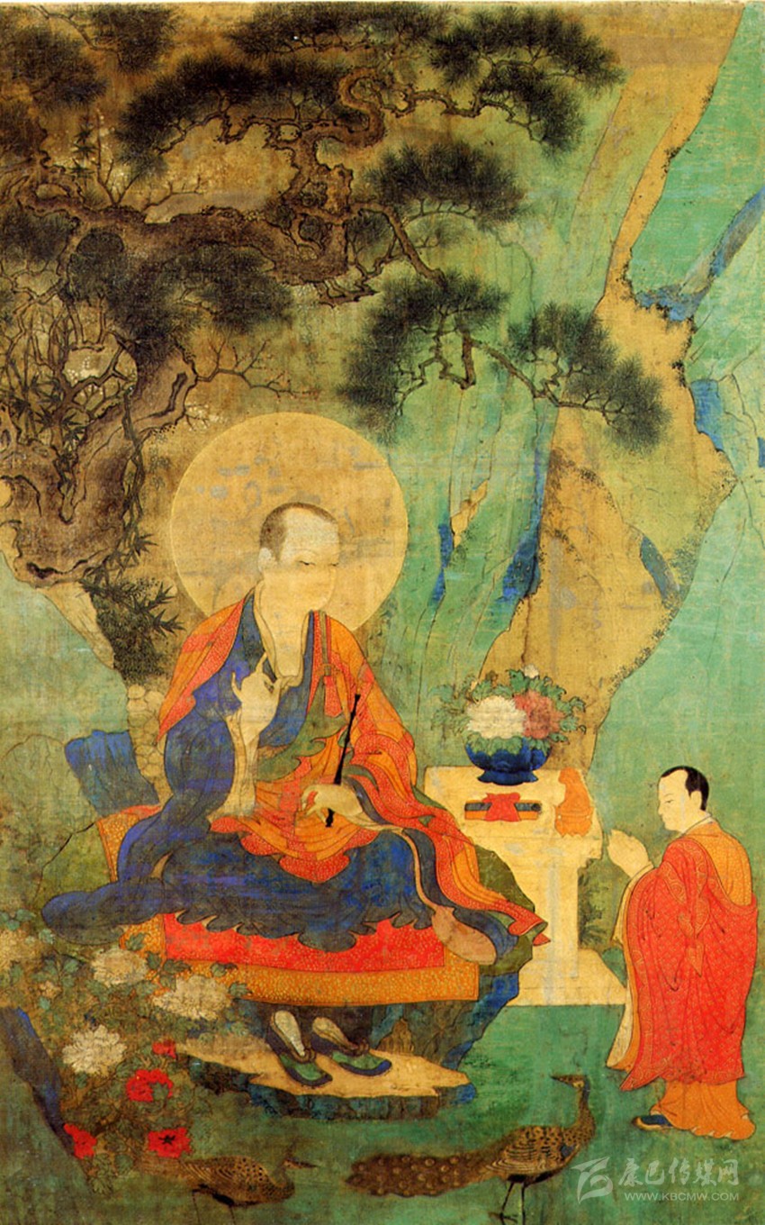 公元1408年,噶瑪巴·德銀協(xié)巴應大明永樂皇帝之邀,前往南京弘法。明成祖朱棣命宮廷畫家將此隆盛之事繪制成了《噶瑪巴為明太祖薦福圖》,而后又把此圖做成織錦畫賜予了楚布寺。