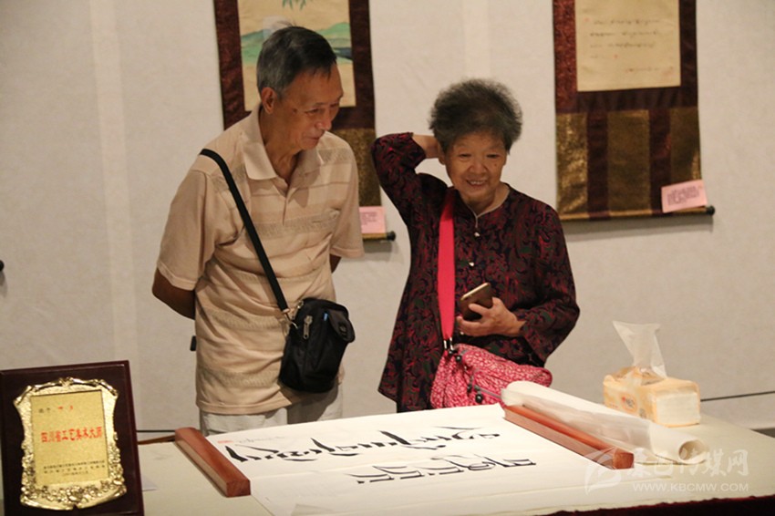 挑選書寫用紙、設(shè)計藏文布局。四川省工藝美術(shù)大師呷多也是忙碌不停?!罢褂[越辦越好、越辦越有特色了?!边@是他多次參加我州文化展覽后的親身感受,他直言本次展覽又是一次向前的踏步。