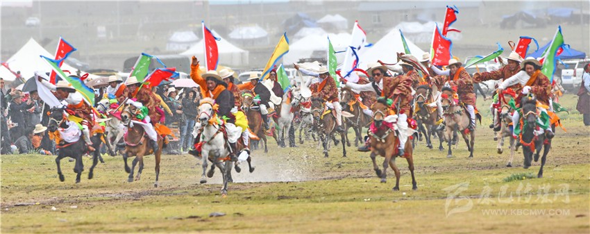 “神駿飛蹄沖云霄,箭過耳畔風(fēng)蕭蕭。眨眼已達(dá)終點(diǎn)線,歡呼聲起似驚濤?!薄@是今年理塘賽馬會(huì)現(xiàn)場(chǎng)最貼切的寫照。8月3日上午,在“馬術(shù)之鄉(xiāng)”的理塘縣八一賽馬場(chǎng),禮炮聲響還未散盡,來自曲登鄉(xiāng)、高城鎮(zhèn)、格木鄉(xiāng)、奔戈鄉(xiāng)、禾尼鄉(xiāng)及村戈鄉(xiāng)共計(jì)1000名草原騎手齊登場(chǎng),他們忽而馬背倒立,忽而藏身馬肚,忽而俯身拾哈達(dá),忽而飛槍射擊,繪出一幅壯闊人心的畫面。