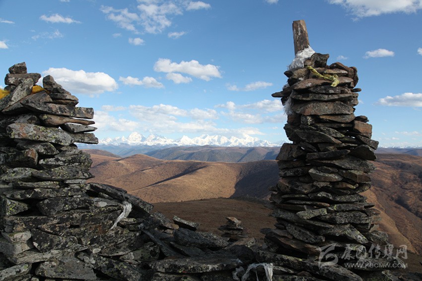 在高爾寺山頂,一個(gè)標(biāo)注有海拔4412米的藍(lán)底標(biāo)志牌顯得有些孤單,與之相伴的,除了呼嘯的大風(fēng)外,還有隨風(fēng)飄動的嘛呢旗。頭頂?shù)乃{(lán)天沒有一朵云彩,遠(yuǎn)處的雪山格外潔白耀眼,曾經(jīng)繁茂的小草已經(jīng)枯黃了,幾朵不知名的野花在寒風(fēng)中書寫著最后的輝煌,仿佛在向人們宣誓著它的存在。