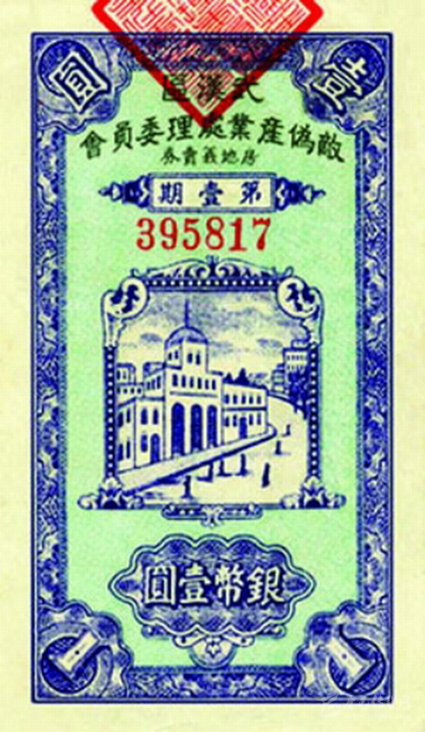 1949年3月,武漢市政府發(fā)行了100萬張彩票,面值都是“銀幣一元”,可以買一張,中獎率是兩萬五千分之一,獎品是位于漢口的別墅。推出彩票“房地義賣券”,以武漢區(qū)敵偽產(chǎn)業(yè)處理委員會名義發(fā)行,票幅高62毫米,闊106毫米,售價(jià)為銀幣壹元,計(jì)劃發(fā)行100萬枚,計(jì)有39幢房屋充作獎品,定于5月10日在漢口當(dāng)眾搖彩。1949年,正是國民黨政權(quán)風(fēng)雨飄搖之時,因此5月10日的搖彩日也就成了彩票發(fā)行組織者的逃命日,六天后武漢解放,那“房地獎”未能兌現(xiàn)。