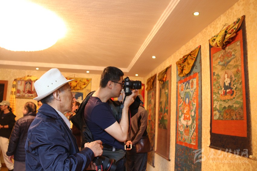 圖為參觀精品唐卡現(xiàn)場。