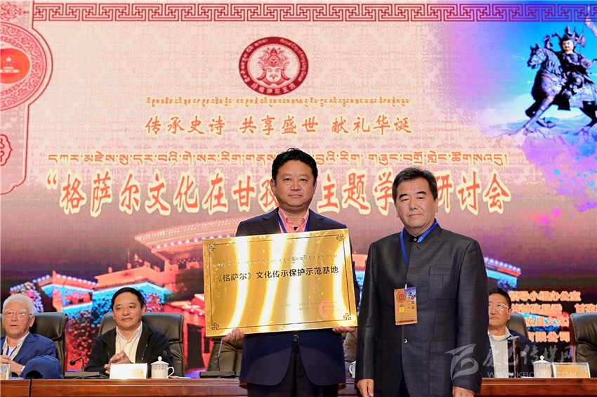 全國《格薩(斯)爾》工作領(lǐng)導(dǎo)小組辦公室主任諾布旺丹向甘孜縣授牌。