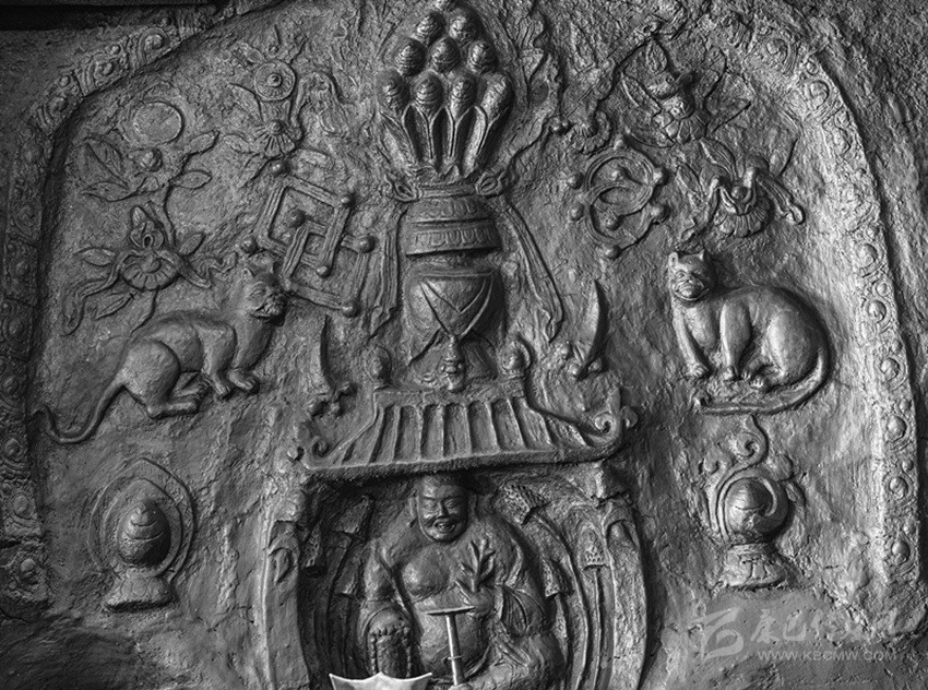 據(jù)他介紹,在鄉(xiāng)城傳統(tǒng)的民居白藏房里,每家每戶都時興裝飾灶臺,圖案精致,色彩豐富。雖然,各家的式樣配色大相徑庭,但是不論如何變換,祈求人興物豐的一面圖騰之壁上,總是少不了“貓”的身影。