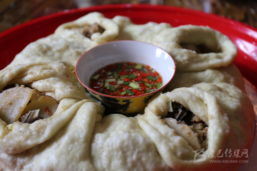 但是,家用的籠屜小,蒸出的數(shù)量有限,為了讓戰(zhàn)士們夠吃,婦女們就借來大籠屜,將包子做得更大,軍民共食蒸肉,暢敘友情。為了表達軍民魚水情,大家把蒸肉稱為“團結(jié)包子”。從此,“團結(jié)包子”這個涵蓋著軍民一家親意義的名字就延續(xù)下來。十八軍進藏路過巴塘?xí)r正值端午節(jié),自此,每年端午節(jié),巴塘城區(qū)家家戶戶都要吃“團結(jié)包子”,以此紀念十八軍進藏,也意寓全家團團圓圓。