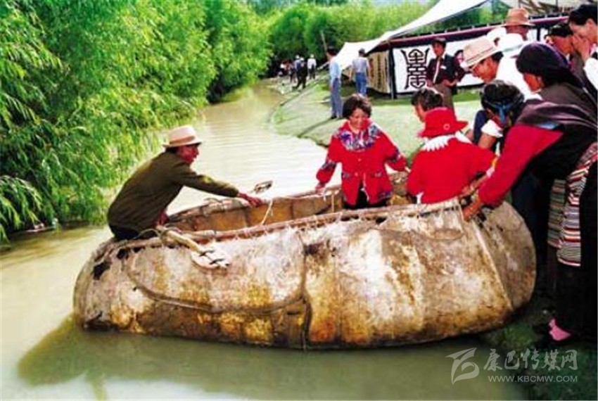近代牛皮船側(cè)面看是梯形的,下大上小,用4張牛皮縫制,船底面積比早期船大一倍,一只船一次約載七八個人。牛皮船可靈活組合,如果乘客人數(shù)較多又不愿分開過江河,也可把幾只牛皮船捆綁在一起,這樣人和東西就可以一起過江了。當然,這時候船夫也需要添幾個幫手。一個牛皮船只有數(shù)十斤重,一個人背著還可以走遠路。不用時則支在駐地附近晾干。至今在雅魯藏布江和拉薩河上還能見到牛皮船的影子,在偏遠的鄉(xiāng)村,只要有河,牛皮船仍然是人們渡河的工具。