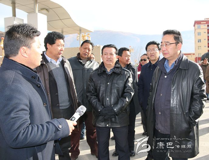 圖為李康、益西達瓦與參會人員在爐霍縣考察城市建設。