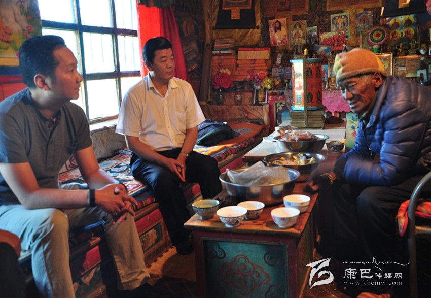 楊國元與色達(dá)縣打龍寺僧侶親切交談。