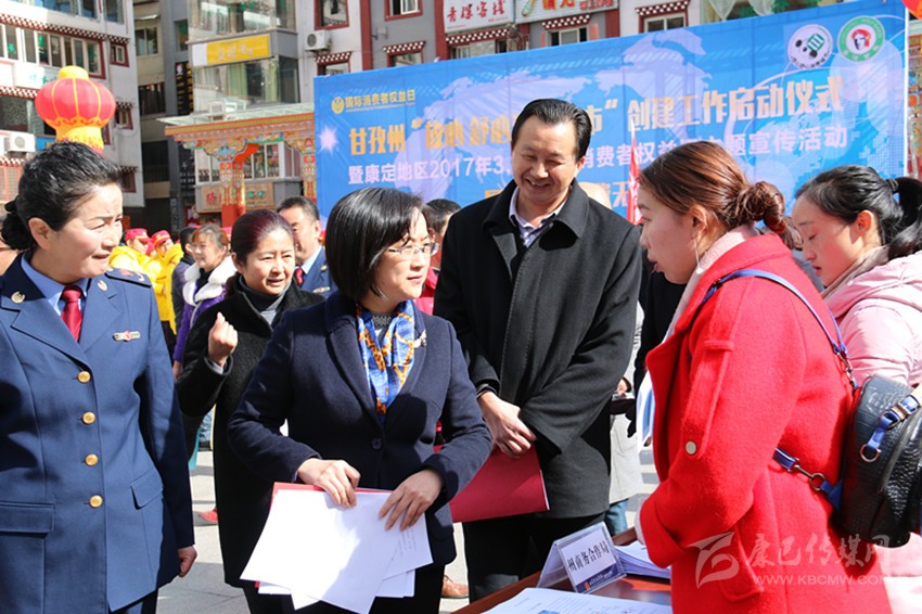 州人民政府副州長(zhǎng)程靜出席并宣布“放心舒心消費(fèi)城市”創(chuàng)建工作啟動(dòng)暨今年3.15“國(guó)際消費(fèi)權(quán)益日”宣傳活動(dòng)正式開始。并與州人大常委會(huì)秘書長(zhǎng)田龍、州政協(xié)秘書長(zhǎng)擁措向消費(fèi)者代表贈(zèng)送消費(fèi)維權(quán)宣傳資料。