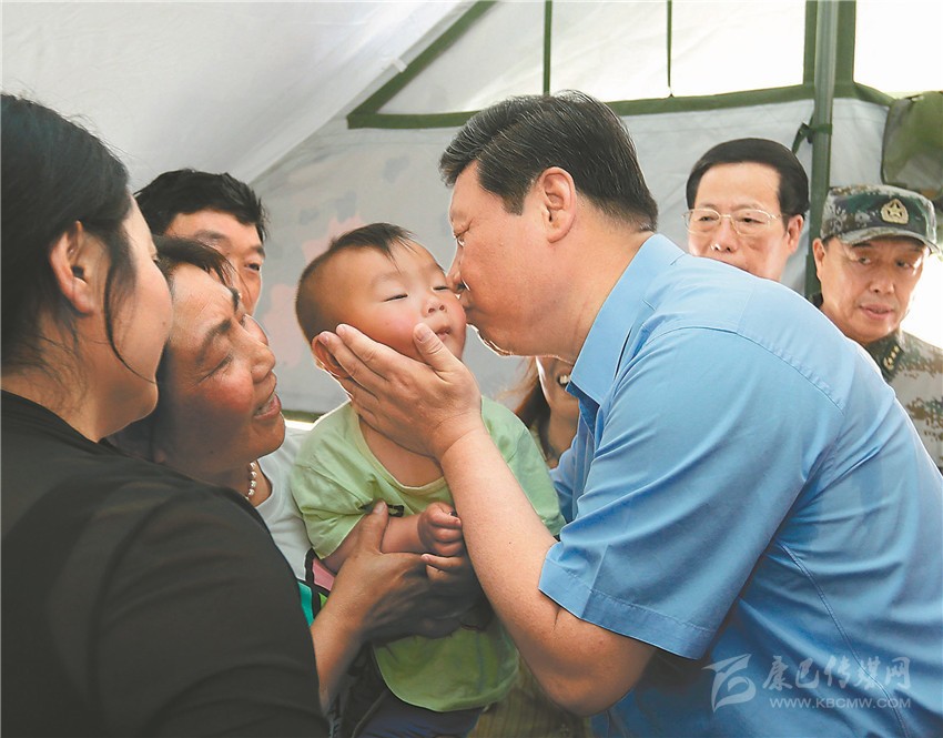 2013年5月21日,習(xí)近平總書記來到蘆山,在震后安置群眾的蘆山縣體育館,他捧著駱俊誠的小臉蛋輕輕親吻的畫面,感動(dòng)了無數(shù)人。