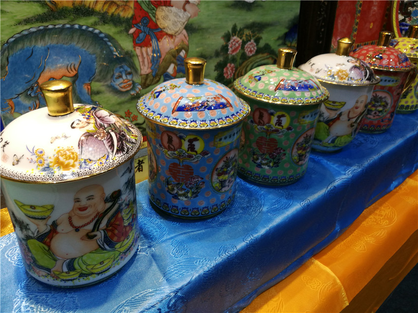 付國華在介紹時說,“高溫粉彩”必須以線條繪畫,將陶瓷唐卡染上顏料燒制,燒制完后再上色再燒制,然后再上色再燒制,在高溫1200度反復(fù)燒制五六次,才能達到一幅比較完整的唐卡。下步公司將黑陶作為新的挖掘目標,相信在馮建華老師的指導(dǎo)下,我州黑陶高溫粉彩陶瓷藝術(shù)將呈現(xiàn)出新亮點,“高溫粉彩”陶瓷藝術(shù)將在廣闊的市場中,為喜愛這一藝術(shù)品的消費者提供需求。
