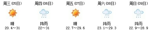 雖然明天太陽(yáng)有點(diǎn)兇,但7日、8日、9日三天陣雨及時(shí)出現(xiàn),日最高氣溫穩(wěn)定在30℃附近。