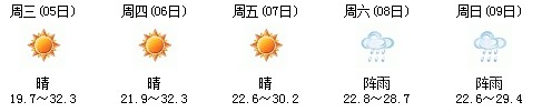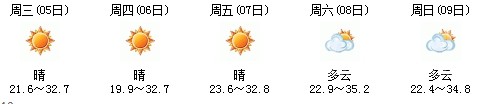 5日白天開(kāi)始一直到9日,以多云天氣為主,其中7日晚有陣雨,日最高氣溫在30度上下,天氣比較舒適,不會(huì)出現(xiàn)高溫天氣,高考和端午節(jié)期間天氣還是比較給力: