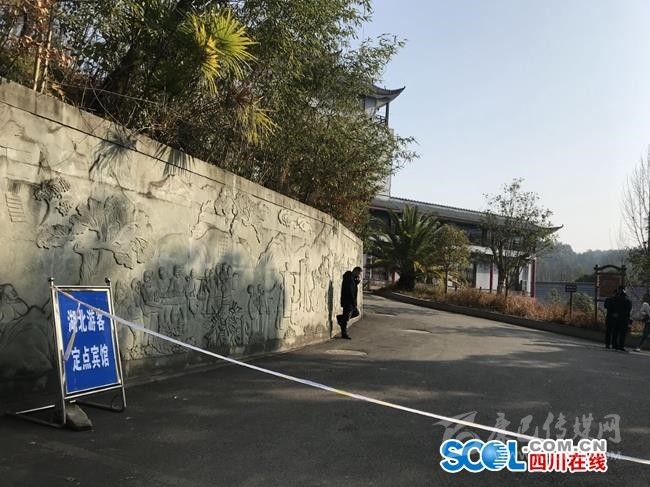 川北民俗文化園是此次廣元市確定的湖北游客定點賓館之一,1月29日,記者在川北民俗文化園看到,酒店門口有清楚的“湖北游客定點賓館”標(biāo)牌,2位戴著口罩的保安負責(zé)在門口勸返其他游客。院內(nèi)有10多位帶著工作證的工作人員在執(zhí)勤,對記者也進行了詢問。
