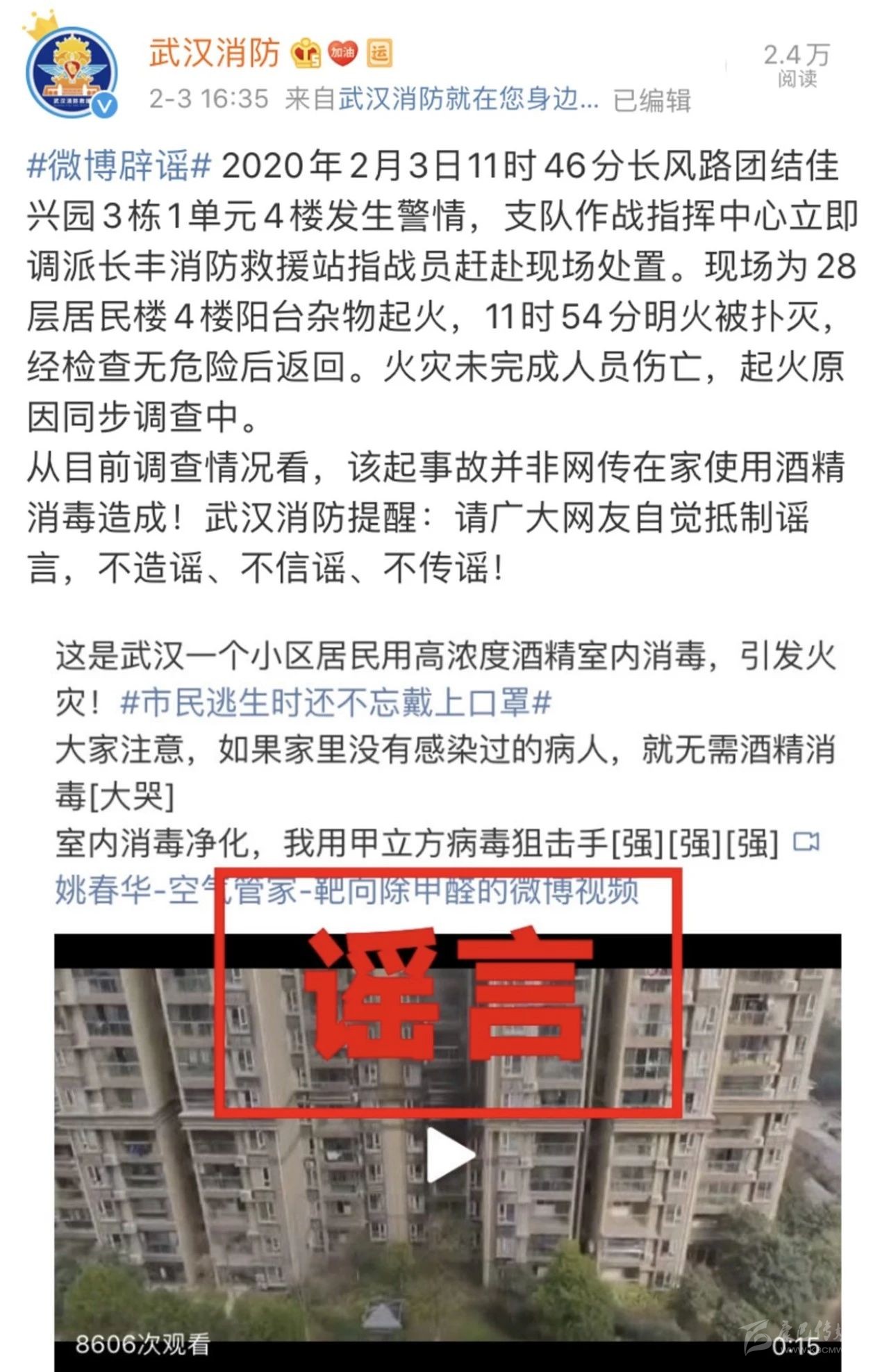 武漢消防在微博回應