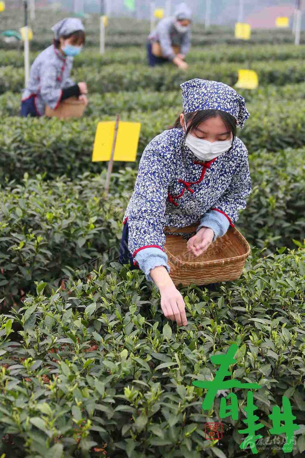 宜賓市翠屏區(qū)金秋湖鎮(zhèn)萬畝有機(jī)早茶基地,采茶姑娘們在忙著采摘早茶。