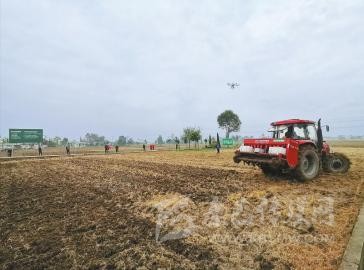綿陽市安州區(qū)河清鎮(zhèn)小麥綠色高質(zhì)高效示范區(qū)內(nèi),正在展示小麥機械直播施肥一體化技術。
