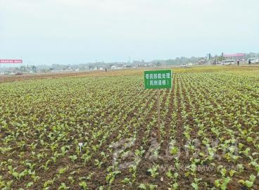 綿陽市安州區(qū)秀水鎮(zhèn)的優(yōu)質(zhì)糧油現(xiàn)代農(nóng)業(yè)園區(qū)內(nèi),經(jīng)過帶藥移栽處理的油菜田。