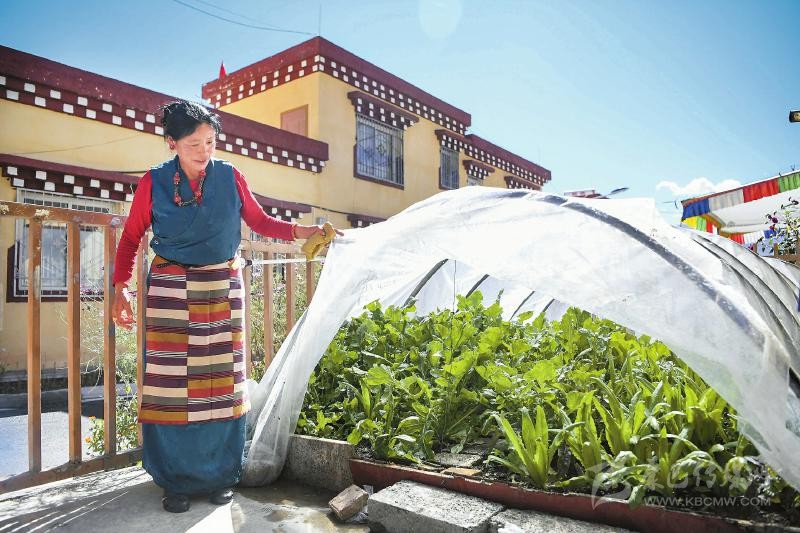 10月12日,甘孜縣吉絨隆溝集中安置點(diǎn)村民展示自己種植的蔬菜。