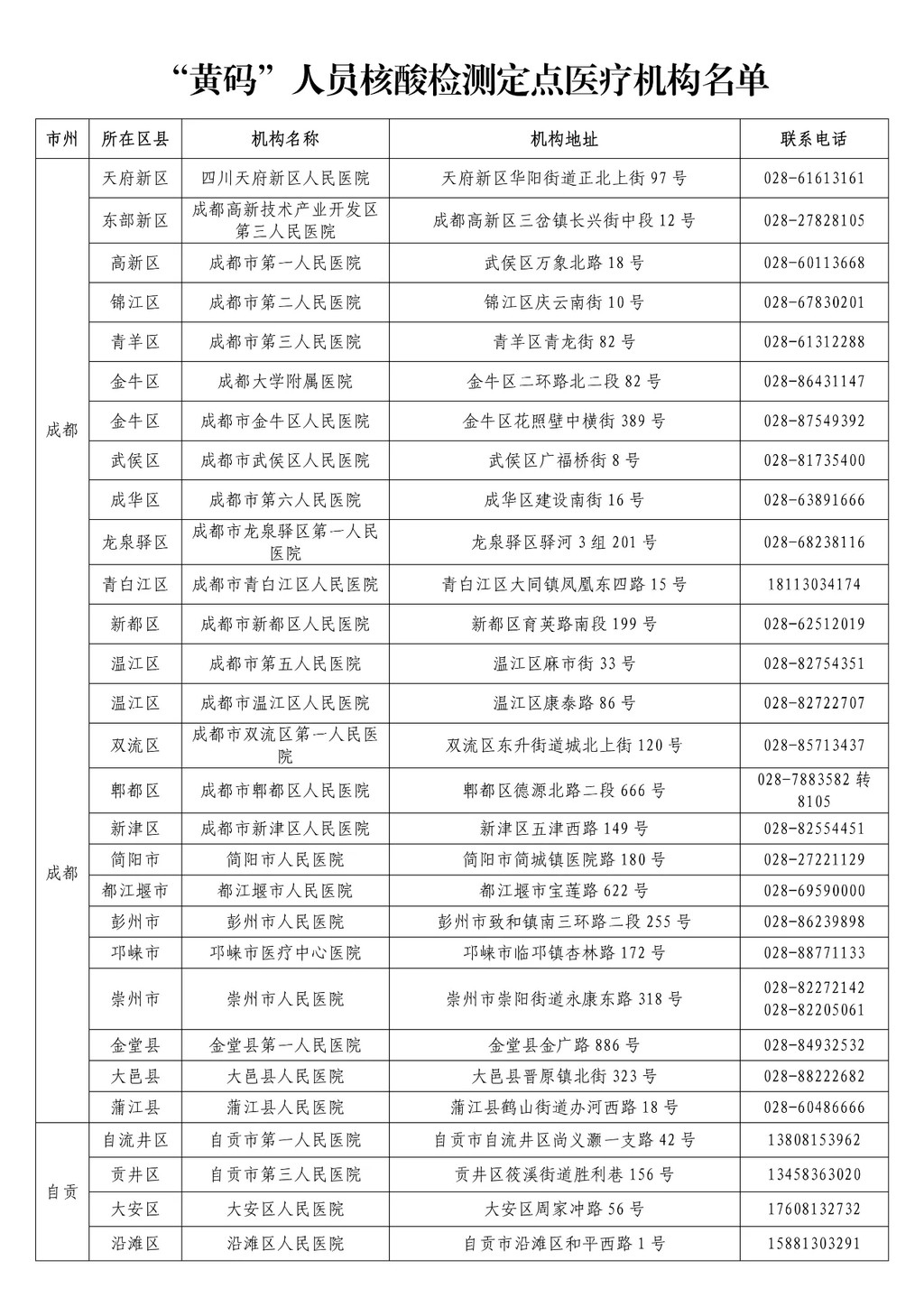 四川21市州“黃碼”人員核酸檢測和看病就醫(yī)定點(diǎn)機(jī)構(gòu)名單來了