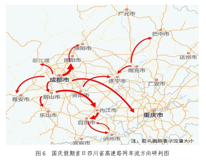 預(yù)計(jì)車流量主要圍繞成都等中心城市呈放射狀分布。節(jié)日期間,成都市周邊各主線站以及連通主線站的環(huán)線高速車流量最為密集,假期出行主要方向集中在成都往德陽(yáng)、眉山往內(nèi)江、內(nèi)江往自貢、成都往雅安、成都往都江堰以及成都往重慶方向。