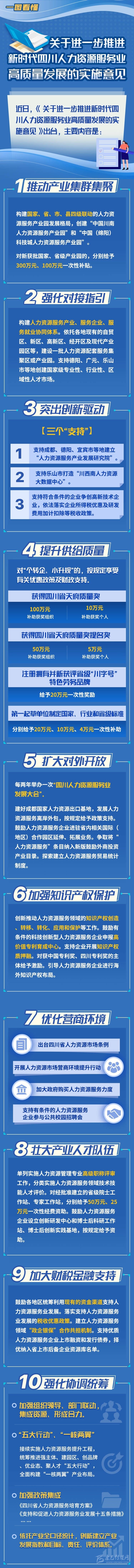 ●優(yōu)化營(yíng)商環(huán)境。出臺(tái)四川省人力資源市場(chǎng)條例。開展人力資源市場(chǎng)營(yíng)商環(huán)境提升行動(dòng)。加大政府購(gòu)買人力資源服務(wù)力度。支持有條件的人力資源服務(wù)企業(yè)參與公共校園招聘會(huì)。