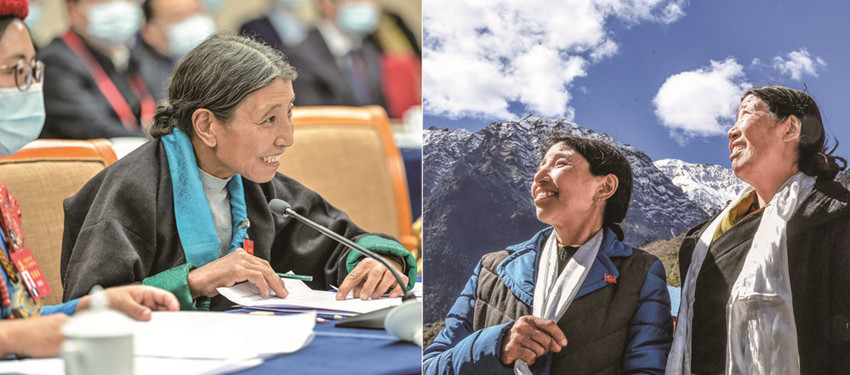 拼版照片:左圖為黨的二十大代表卓嘎在西藏代表團(tuán)討論中發(fā)言;右圖為卓嘎(左)、央宗姐妹倆在一起。 西藏山南市隆子縣玉麥鄉(xiāng)玉麥村村民卓嘎表示,要繼續(xù)當(dāng)好神圣國土守護(hù)者。玉麥鄉(xiāng)地處祖國西南邊陲。上世紀(jì)60年代以來很長一段時間,僅有父親桑杰曲巴和女兒卓嘎、央宗姐妹一戶人家,被外界稱作“三人鄉(xiāng)”。他們始終秉持“家是玉麥,國是中國,放牧守邊是職責(zé)”的堅定信念,幾十年如一日,守護(hù)著祖國的領(lǐng)土,譜寫了愛國守邊的動人故事和時代贊歌。 新華社 發(fā)