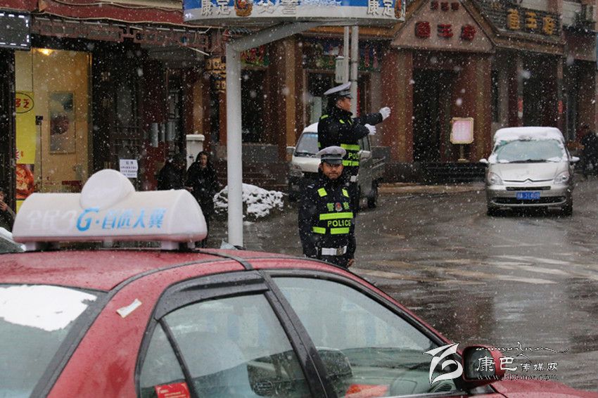 13日早晨9點多,記者來到康定街上,交警羅成正堅守崗位指揮交通,他說,“為保障交通順暢,行人安全出行。我們一早就上崗了。”在州交警大隊,剛出完警回來的中隊長郭平告訴記者:“由于這是今年來的第一場雪,為了保證交通安全,我們出動了大量的警力。”在得知下雪的第一時間,州交警隊的大隊長李雪林便帶隊分片區(qū)進行現(xiàn)場疏導了。據(jù)郭平介紹,部分城區(qū)的警力換崗回來稍作調(diào)整,又出發(fā)上崗,而在折多山和里城較遠地方的警力就原地調(diào)整。為了保證下雪時候的道路暢通和行人出行安全,州交警隊在折多山頂建立了便民警務站,里面配備了熱水、食品、維修工具及供氧設備等,為司機和旅客提供方便??紤]到雪天等極端天氣,州交警大隊啟動了雪天應急預案,采取“遠端管控、近端分流、現(xiàn)場疏導”等措施,依據(jù)具體情況對單邊或突發(fā)事件進行處理。同時,為了解決車輛在下雪天氣因拋錨而發(fā)生擁堵的問題,州交警隊還聯(lián)合州交通部門在折多山放置挖掘機及裝載機,聯(lián)系了相關(guān)汽車維修廠現(xiàn)場救急。州交警部門提醒市民,雪天車輛要加掛防滑鏈條,減速慢行,行人要盡量靠邊行走。