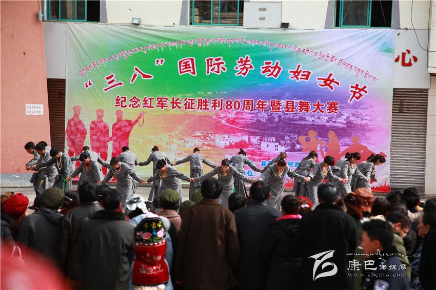 本網(wǎng)訊(何才華文/圖)3月7日,鄉(xiāng)城縣舉行了慶祝“三八”國(guó)際勞動(dòng)?jì)D女節(jié)、紀(jì)念紅軍長(zhǎng)征勝利80周年暨縣舞大賽。以婦代會(huì)為單位的廣大婦女同胞著艷麗藏裝,隨著縣舞音樂(lè)激情舞蹈。為增加舞蹈觀賞性,不少男同胞也加入其中。11支參賽隊(duì)伍,300余名參賽人員為觀眾展示了鄉(xiāng)城縣歷時(shí)兩年收集民間題材編排的首套縣舞。經(jīng)過(guò)角逐,縣環(huán)林局、縣交通運(yùn)輸局等婦代小組組成的參賽隊(duì)獲得冠軍。