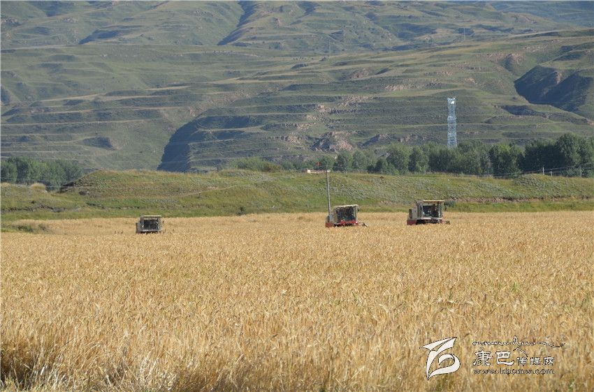 青稞基地機械化收割。