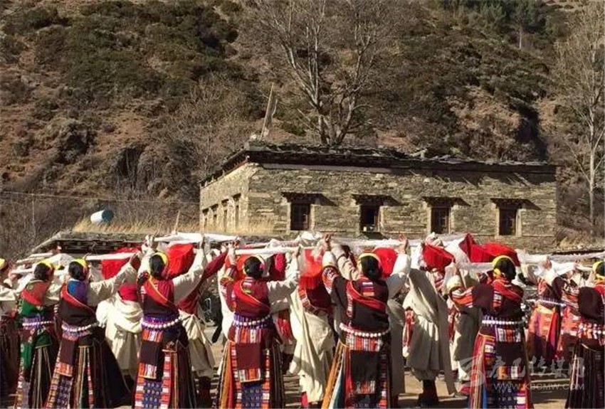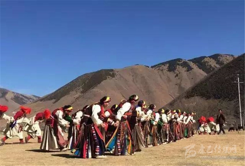 在這個只有300余人的小村,就有近60位青壯年參加了節(jié)目組織和排演,為了讓節(jié)目更加出彩,康定市文化館館長以及舞蹈編排老師,多次深入村莊,與村民同吃同住,從排演隊形開始,耐心的指導每一個舞步、糾正每一個動作。雖然參與人員的全部是業(yè)余演出人員,但是他們卻有著百分百的敬業(yè)精神,每天農(nóng)忙結束,大家就聚集在一處學習新動作。只要是有演出經(jīng)驗的人就會知道,數(shù)十人的群舞最難的地方就是演員之間的相互協(xié)調(diào),而這種難題只有通過反復排練才能解決。一群人只有將節(jié)目演好這樣一個堅定的信念,所以即使在寒冷的冬夜,即使要跳到凌晨一兩點鐘,也沒有人抱怨。