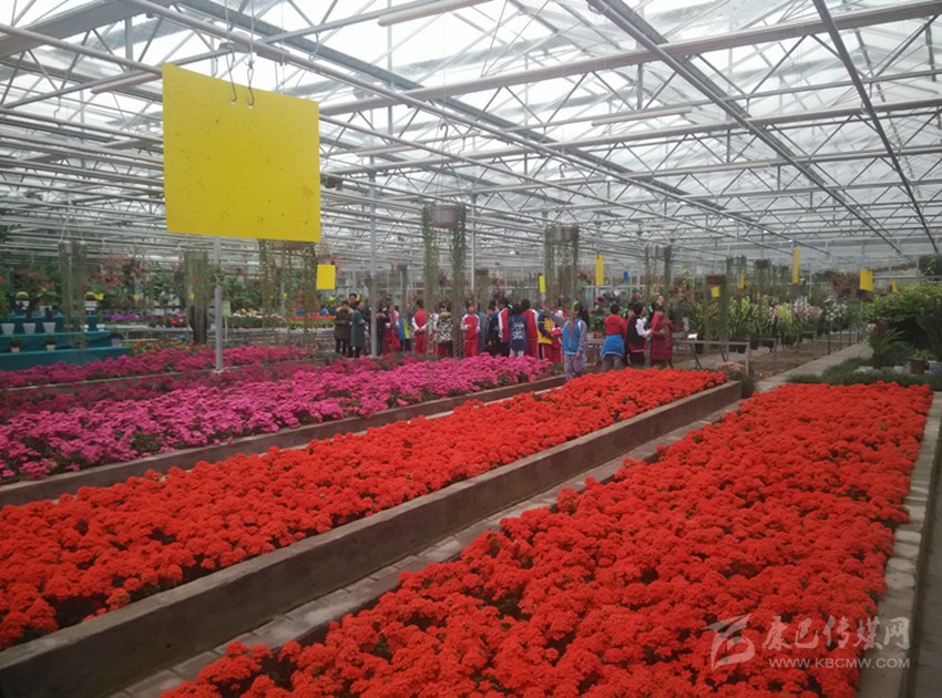 考察團坐上觀光電瓶車,穿行在產(chǎn)業(yè)園內3000余畝的百合及各種花卉中間,香氣宜人,流連忘返;走進單棟面積達10000平米的14個連棟智能溫室花卉大棚,妖艷的水仙,高挑的百合,艷麗的百合,白色的、黃色的、紅色的、粉色的,讓人眼花繚亂,置身于花海中的你,一年四季都有花看、有花賞。